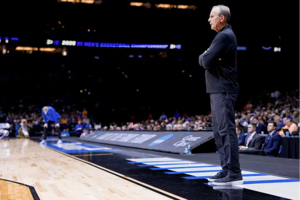 INDIANAPOLIS, IN – March 28, 2025 – Head Coach Rick Barnes of the Tennessee Volunteers during the Sweet Sixteen round game of 2025 NCAA Men’s Basketball Tournament between the Kentucky Wildcats and the Tennessee Volunteers at Lucas Oil Stadium in Indianapolis, IN. Photo By Andrew Ferguson/Tennessee Athletics