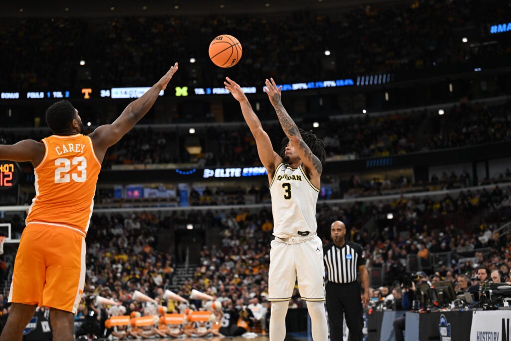 One sequence with less than nine minutes left in the first half captured how quickly the game tilted in Michigan’s favor. Bishop Boswell missed a semi-contested corner 3-pointer, and Tennessee crashed the glass in pursuit of the rebound, leaving itself exposed in transition. Three Wolverines sprinted up the floor, and Roddy Gayle got a clean look from beyond the arc, knocking down a 3-pointer to push Michigan’s lead to 25-16.